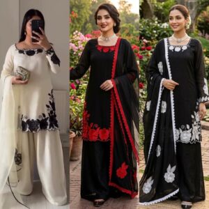 Step into effortless charm with our exclusive 3-piece set from the All-New 5000 Series. This premium ensemble features a Jmc silk top, palazzo, and dupatta, all adorned with intricate thread work. Available in sizes M to XXL (with a 3XL margin), this set is ready to ship and perfect for festive, formal, and casual wear.