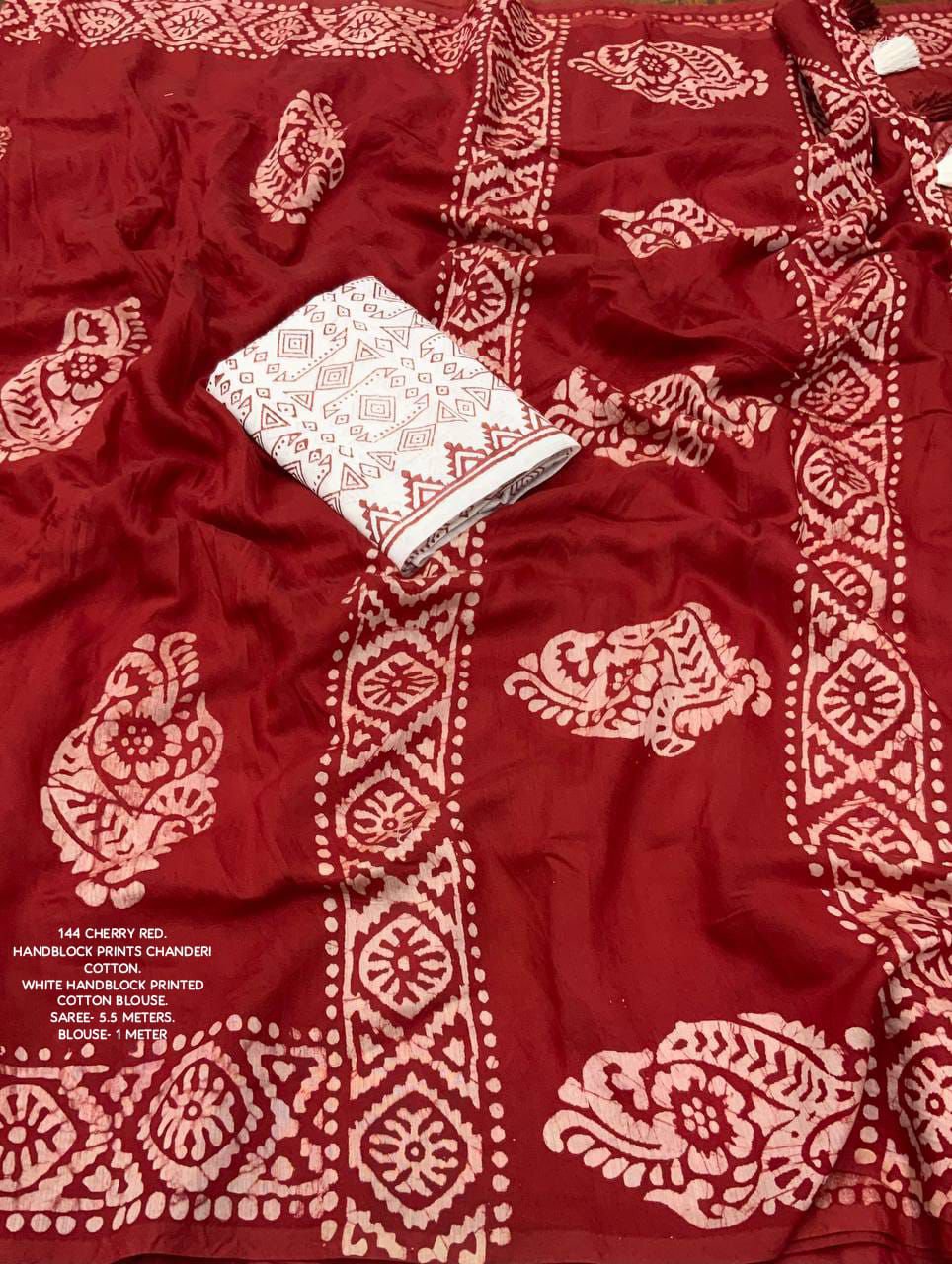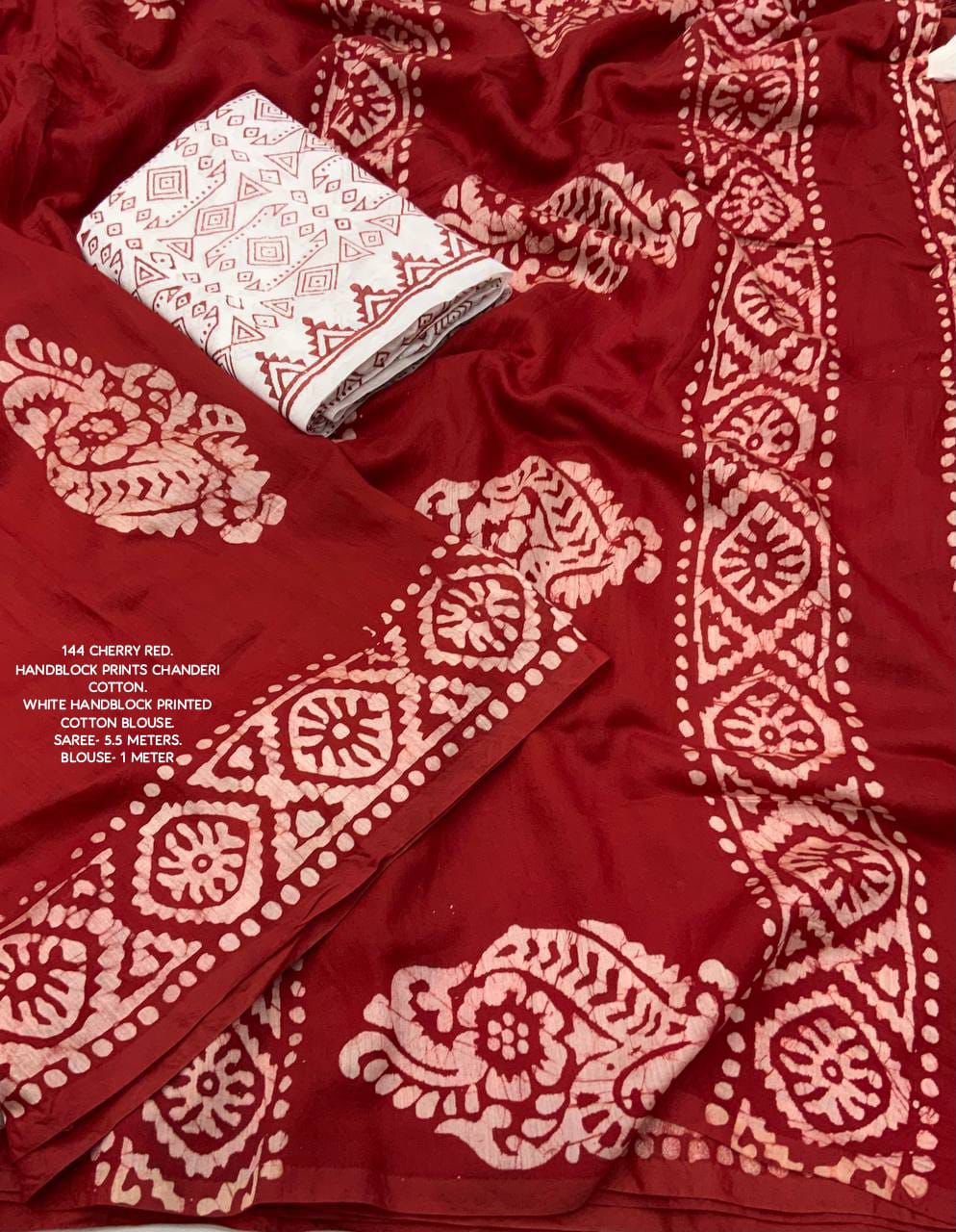 Quality- soft pure chanderi cotton saree with hand block batik prints.
