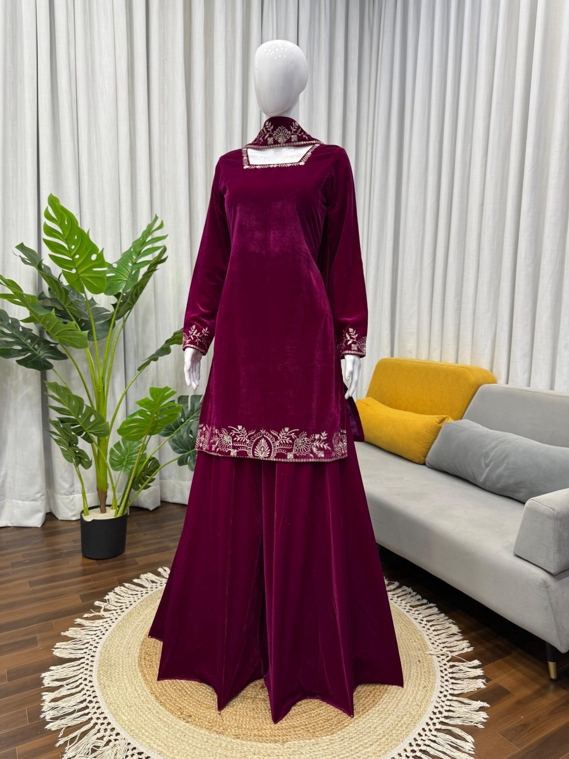 Designer Velvet Sharara Set – Elegant Ethnic Wear