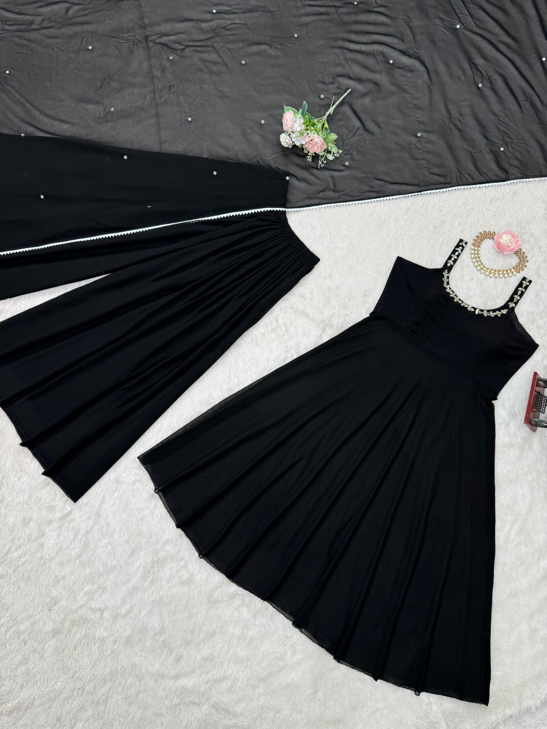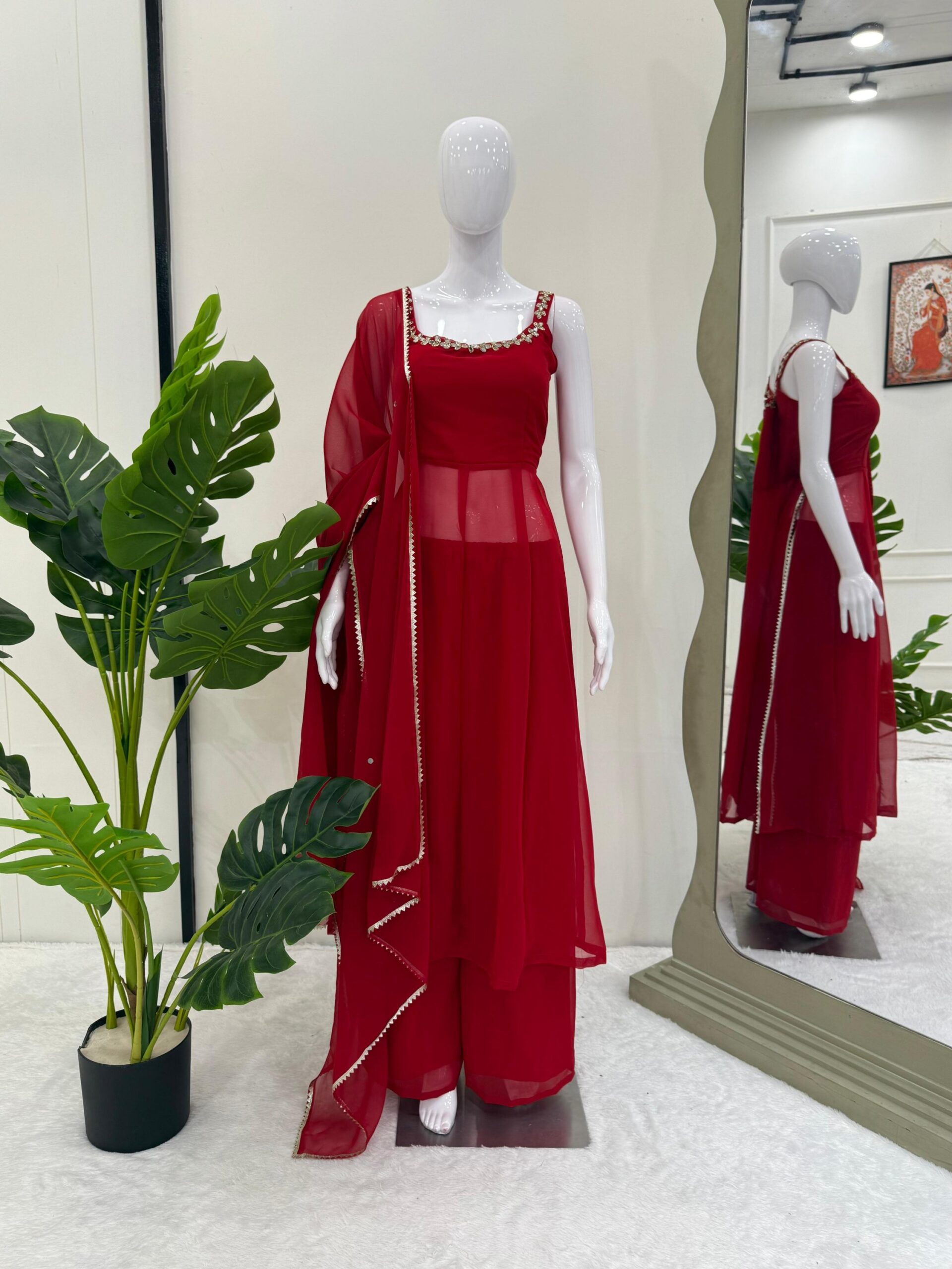 #fauxgeorgette #readytowear #indianfashion #ethnicwear #plazopants #mirrorwork #newcollection #fashion #style #onlineshopping #womensfashion #georgettesuit #fullystitched #shopnow #instafashion #trending